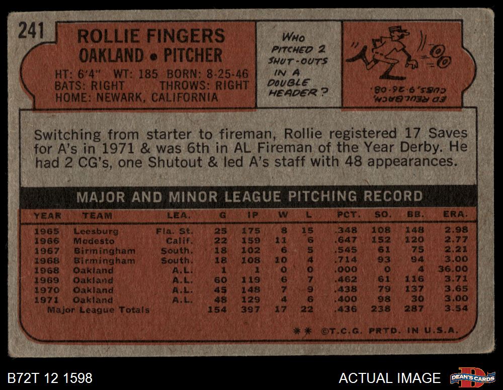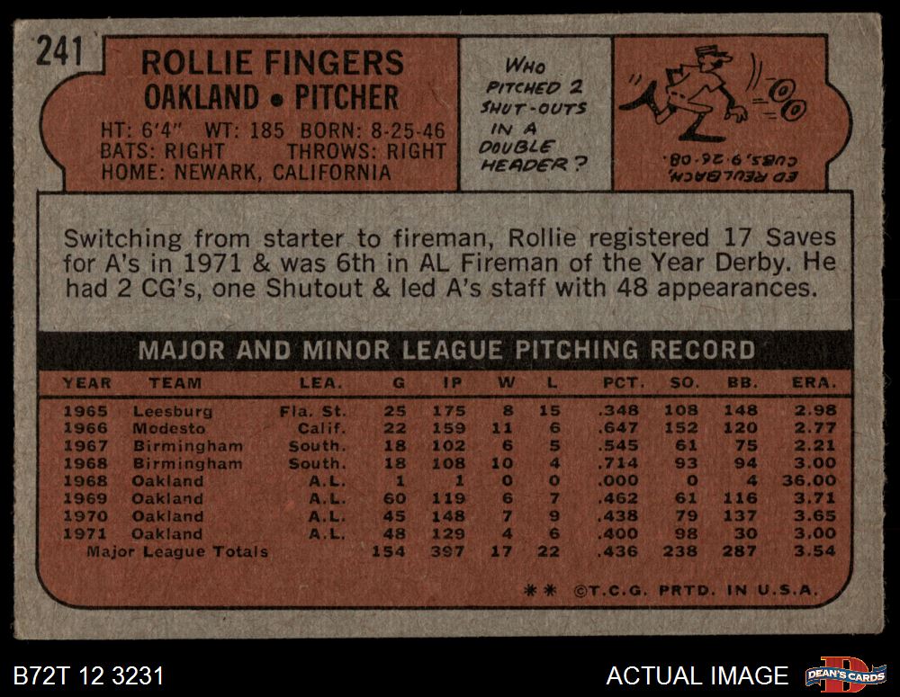 1972 Topps #241 Rollie Fingers 1 - POOR