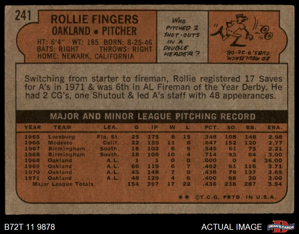 1972 Topps #241 Rollie Fingers 1.5 - FAIR