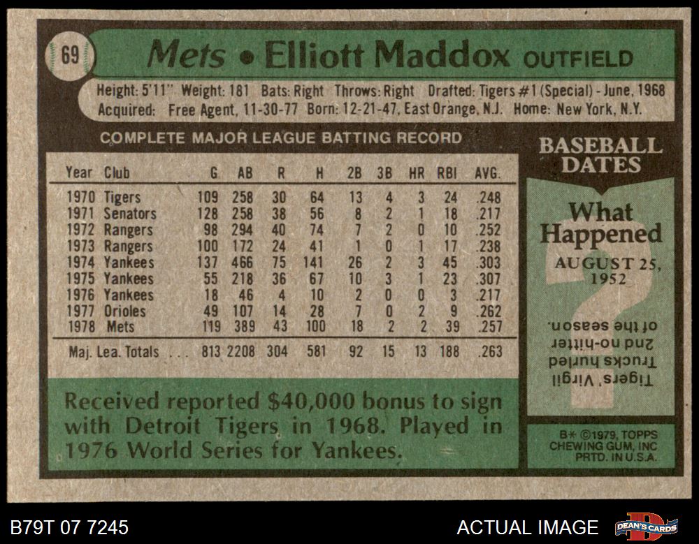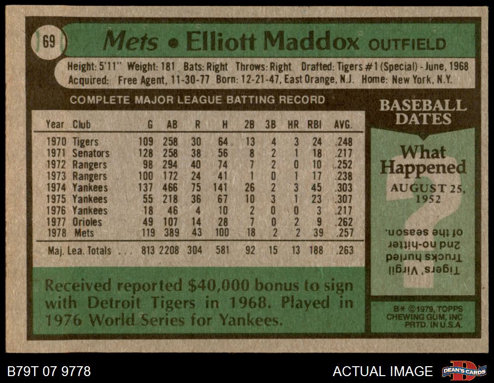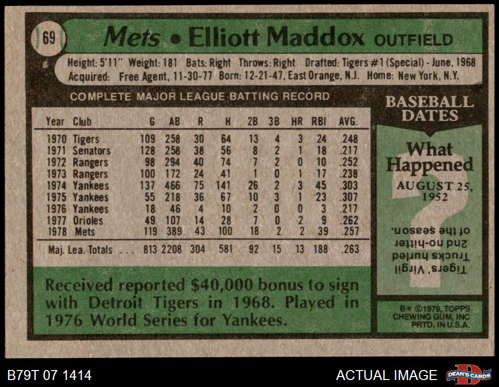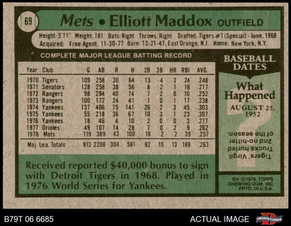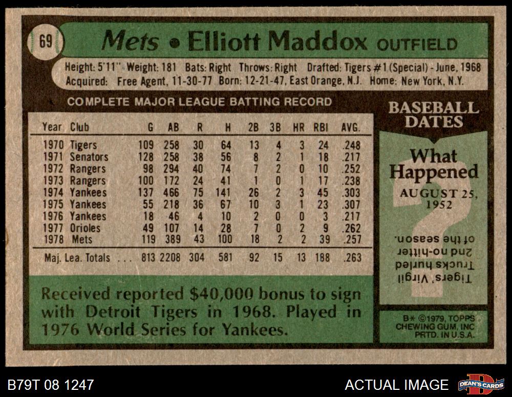 1979 Topps #69 Elliott Maddox 8 - NM/MT