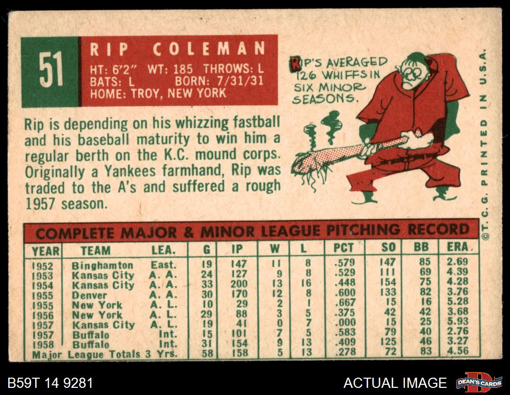 1959 Topps #51 Rip Coleman 2 - GOOD