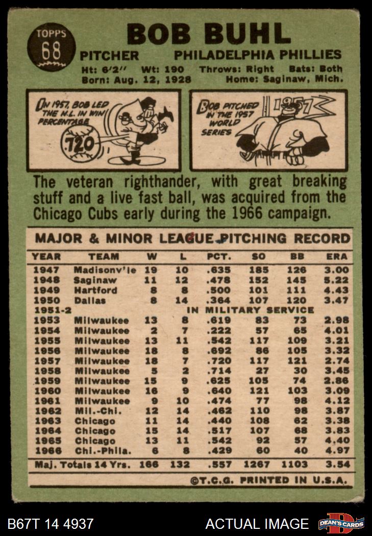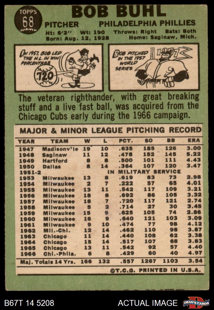 1967 Topps #68 Bob Buhl 2 - GOOD