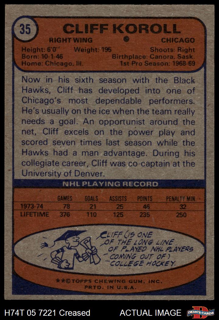 1974 Topps #35 Cliff Koroll 3 - VG