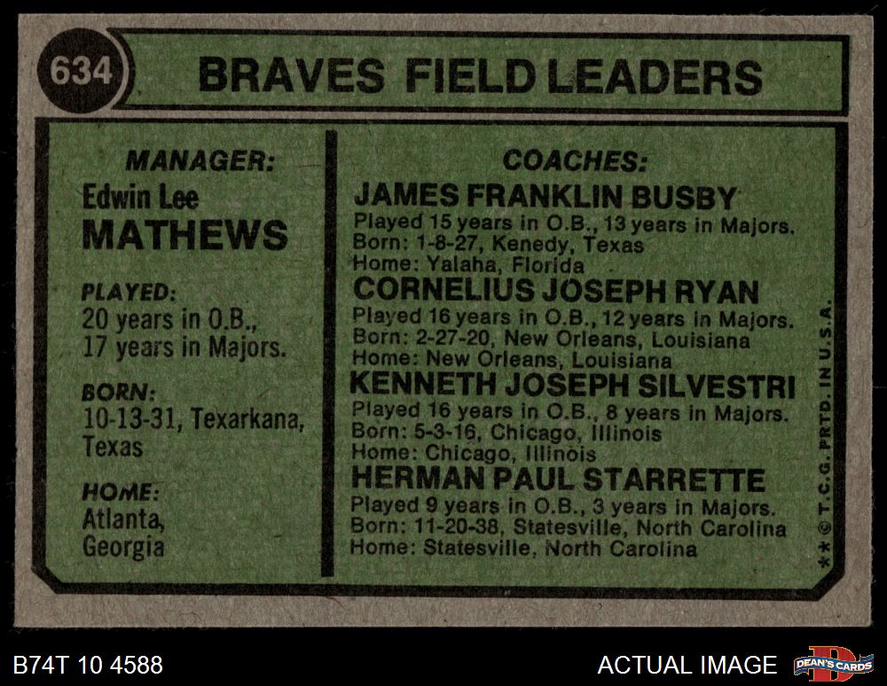 Eddie Mathews / Jim Busby / Connie Ryan / Ken Silvestri / Herm Starrette (40 available)
