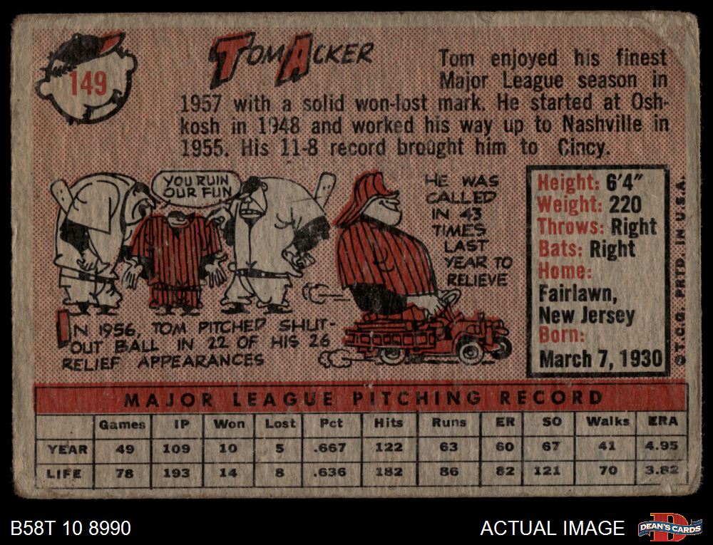 1958 Topps #149 Tom Acker AUTHENTIC