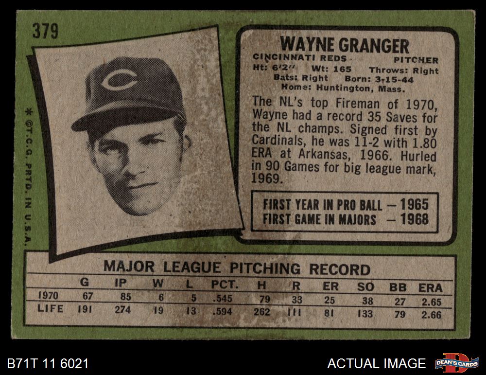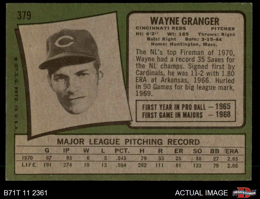 1971 Topps #379 Wayne Granger 3 - VG