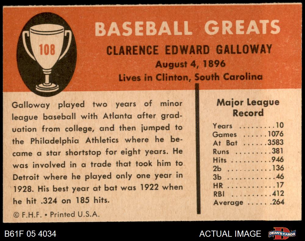 1961 Fleer #108 Chick Galloway 8 - NM/MT