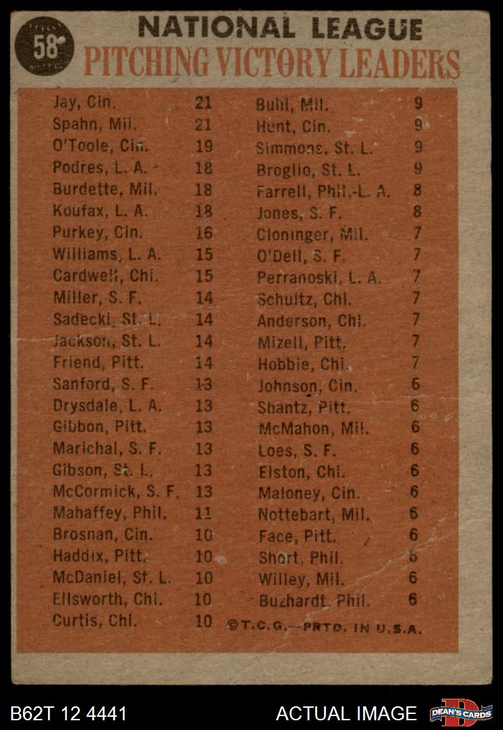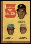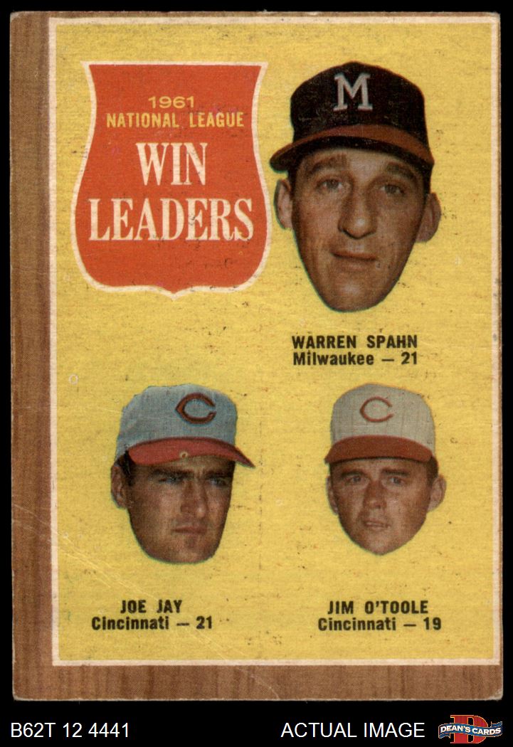 1962 Topps #58 - Warren Spahn / Joe Jay / Jim O'Toole NL Pitching Leaders 1.5 - FAIR