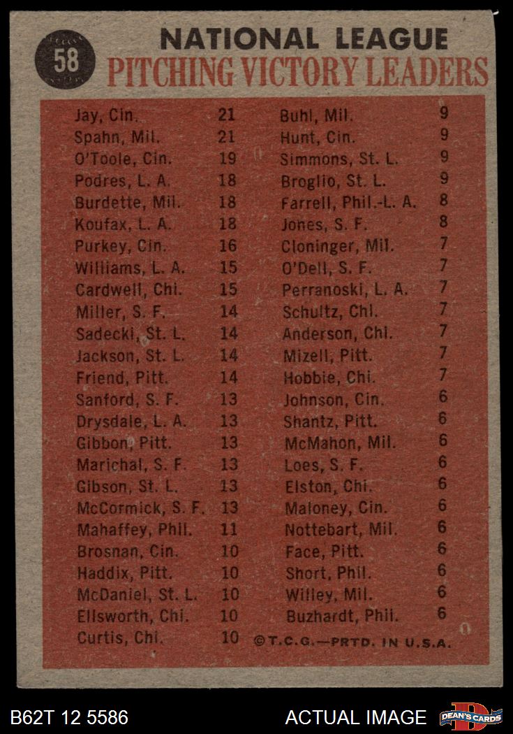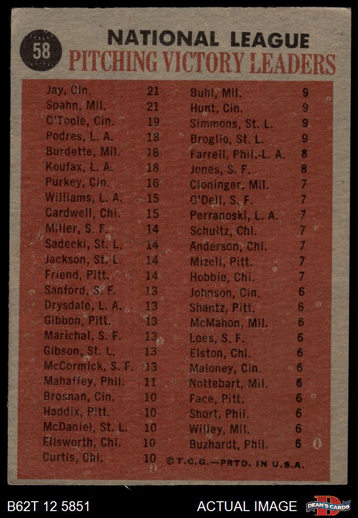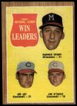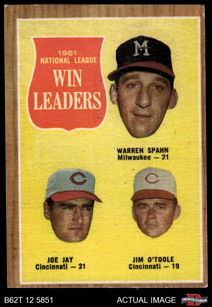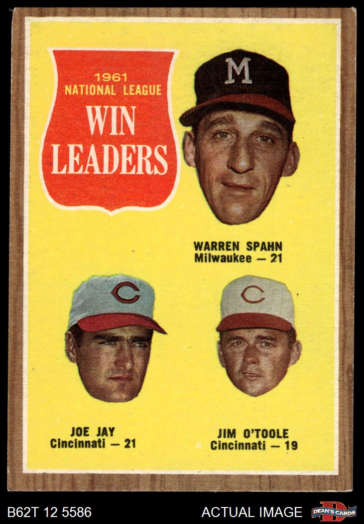 1962 Topps #58 - Warren Spahn / Joe Jay / Jim O'Toole NL Pitching Leaders 3 - VG