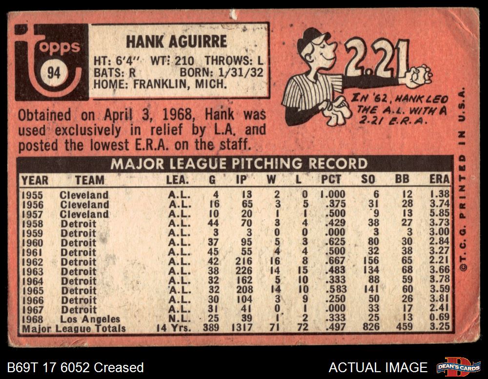 1969 Topps #94 Hank Aguirre 1.5 - FAIR