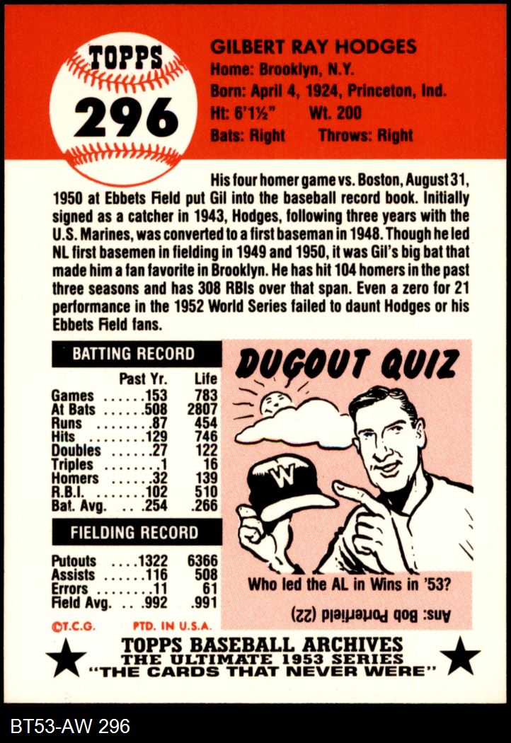 1953 Topps Archives / Reprint (1,425 available)1953 Topps Archives Dodgers (1,045 available)