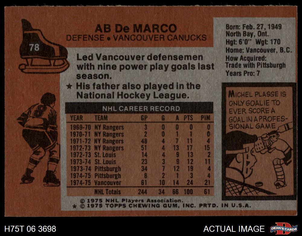 1975-76 Topps Hockey Cards (3,162 available)1975 Topps Canucks (285 available)