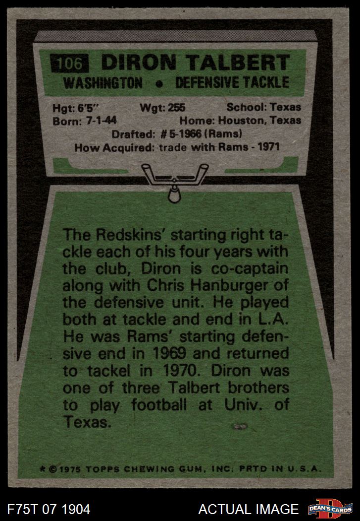 1975 Topps #106 Diron Talbert