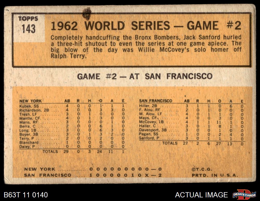 1963 Topps #143 - Jack Sanford 1962 World Series - Game #2 - Sanford Flashes Shutout Magic 1.5 - FAIR
