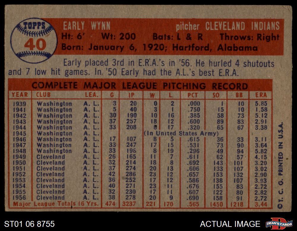 1957 Topps #40 Early Wynn