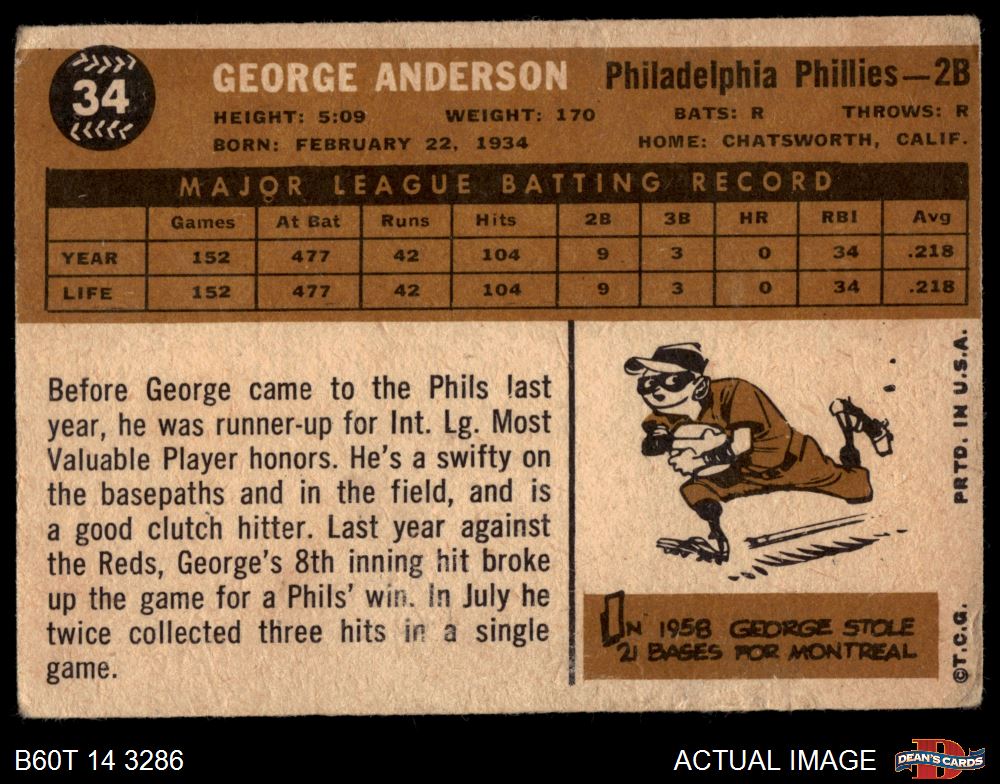 1960 Topps #34 Sparky Anderson 1.5 - FAIR