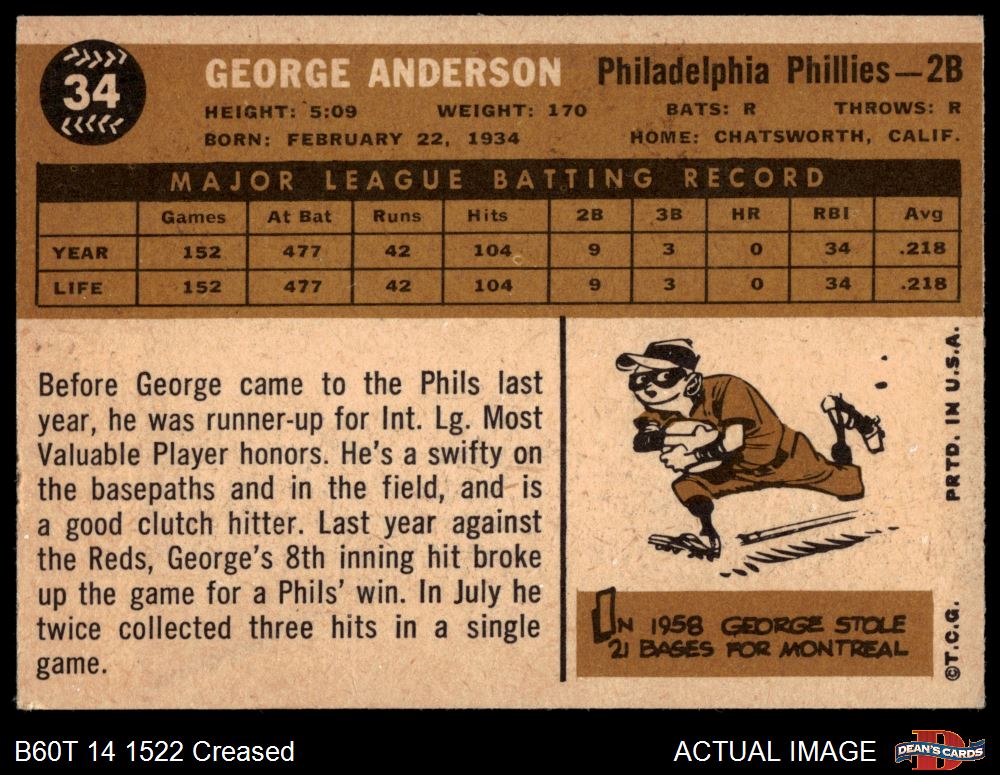 1960 Topps #34 Sparky Anderson 2 - GOOD