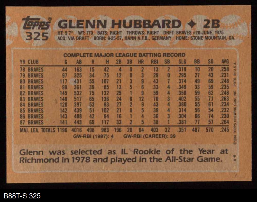 1988 Topps #325 Glenn Hubbard