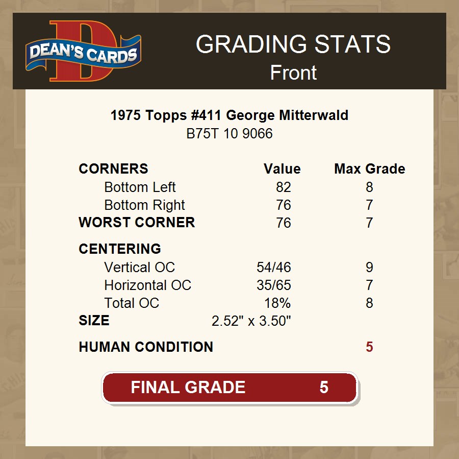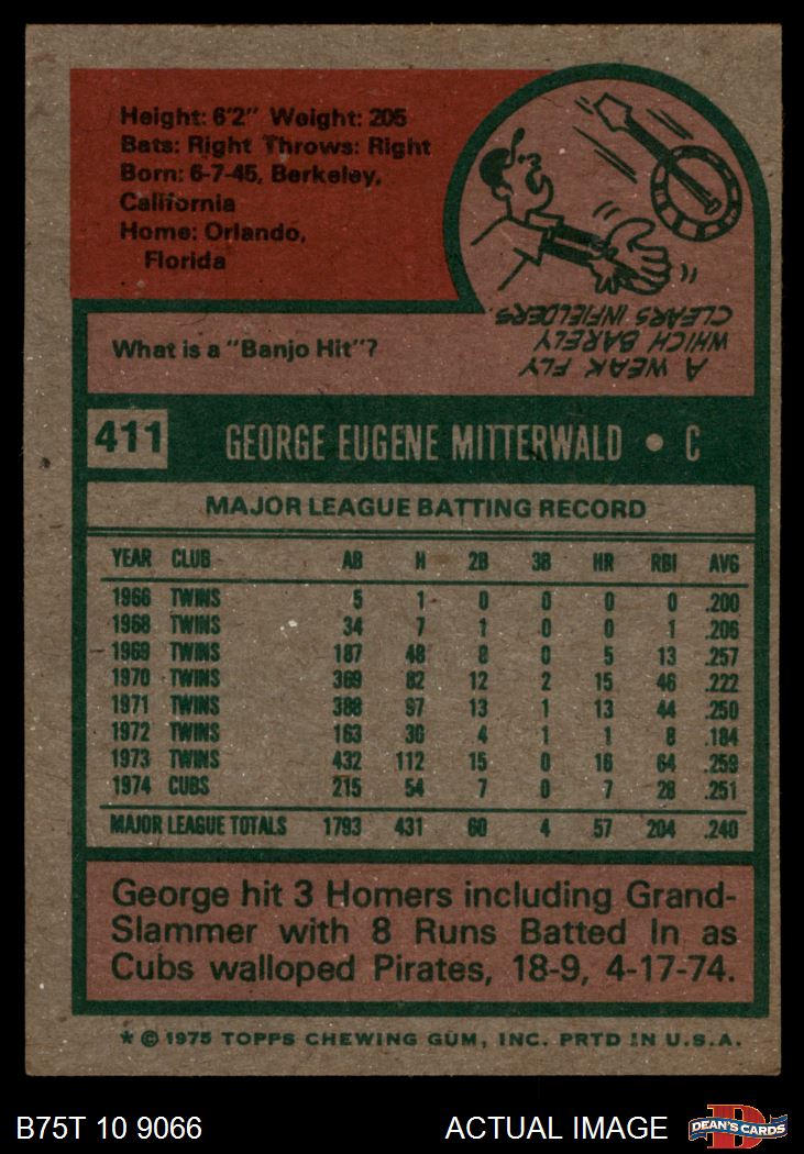 1975 Topps #411 George Mitterwald 5 - EX