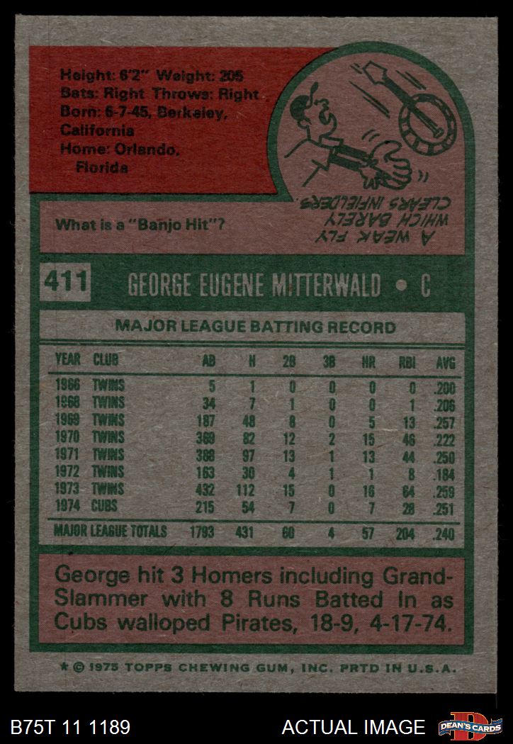 1975 Topps #411 George Mitterwald 6 - EX/MT