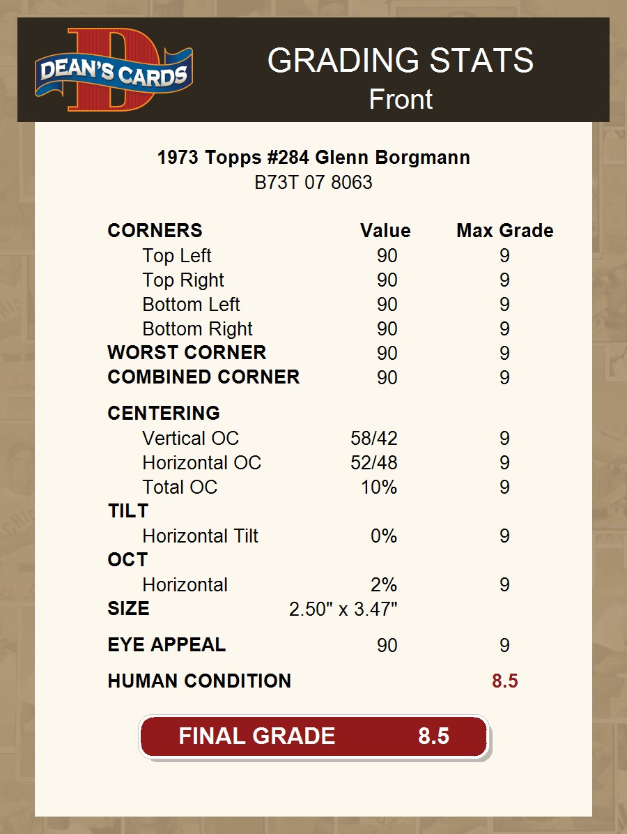 1973 Topps #284 Glenn Borgmann 8.5 - NM/MT+