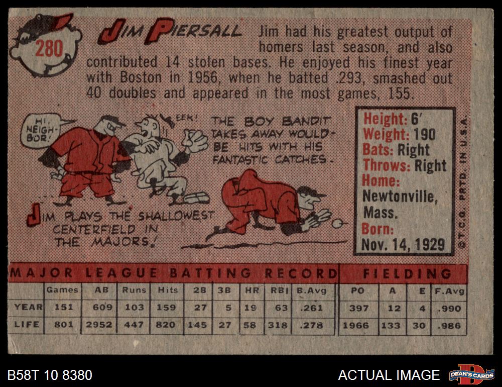 1958 Topps #280 Jimmy Piersall