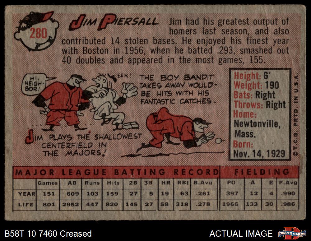 1958 Topps #280 Jimmy Piersall 2 - GOOD