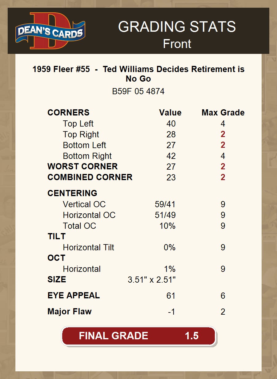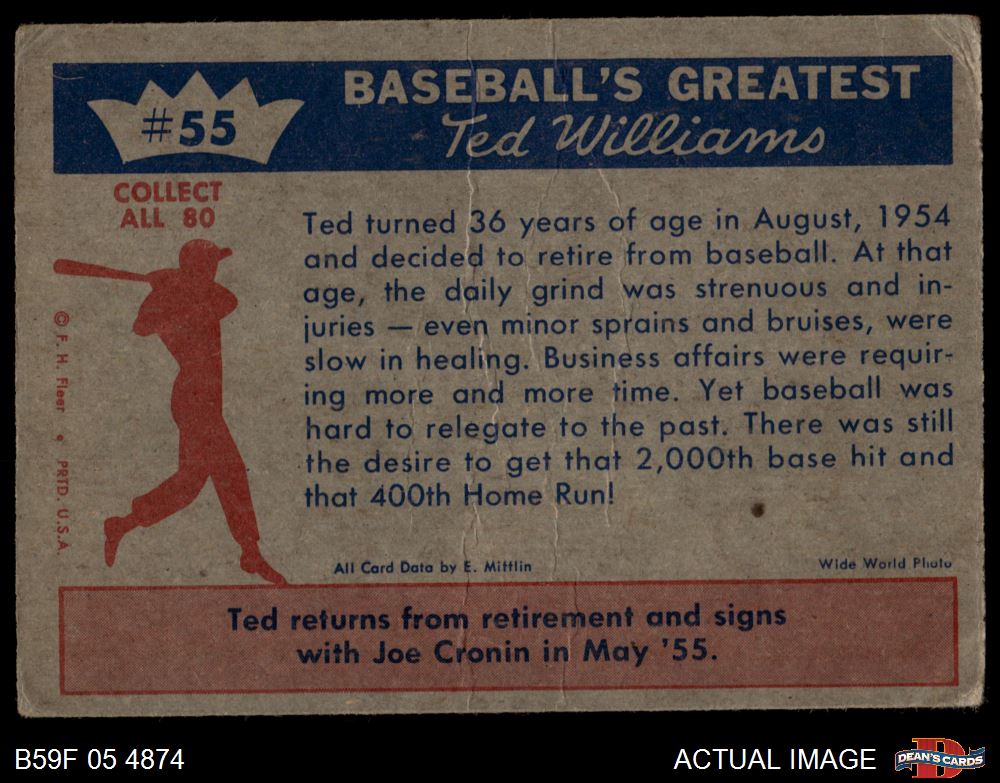 1959 Fleer Ted Williams (255 available)1959 Fleer Red Sox (325 available)