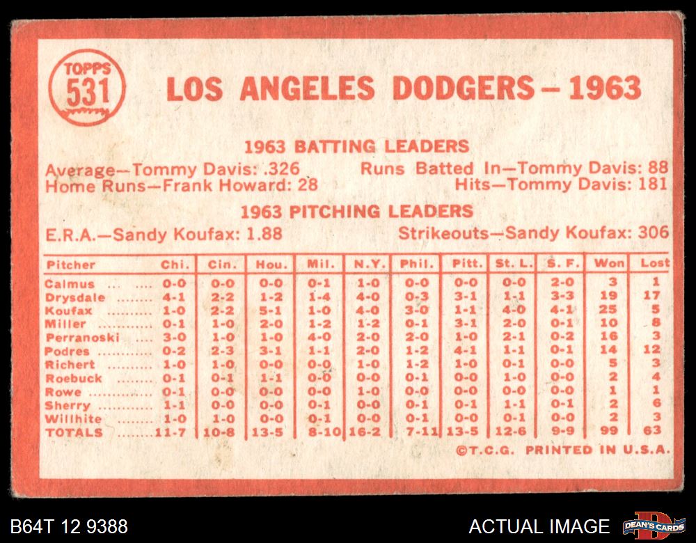 1964 Topps #531 Dodgers Team 1.5 - FAIR