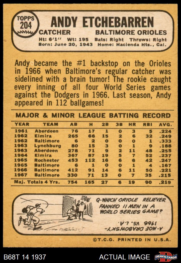 1968 Topps #204 Andy Etchebarren 7 - NM