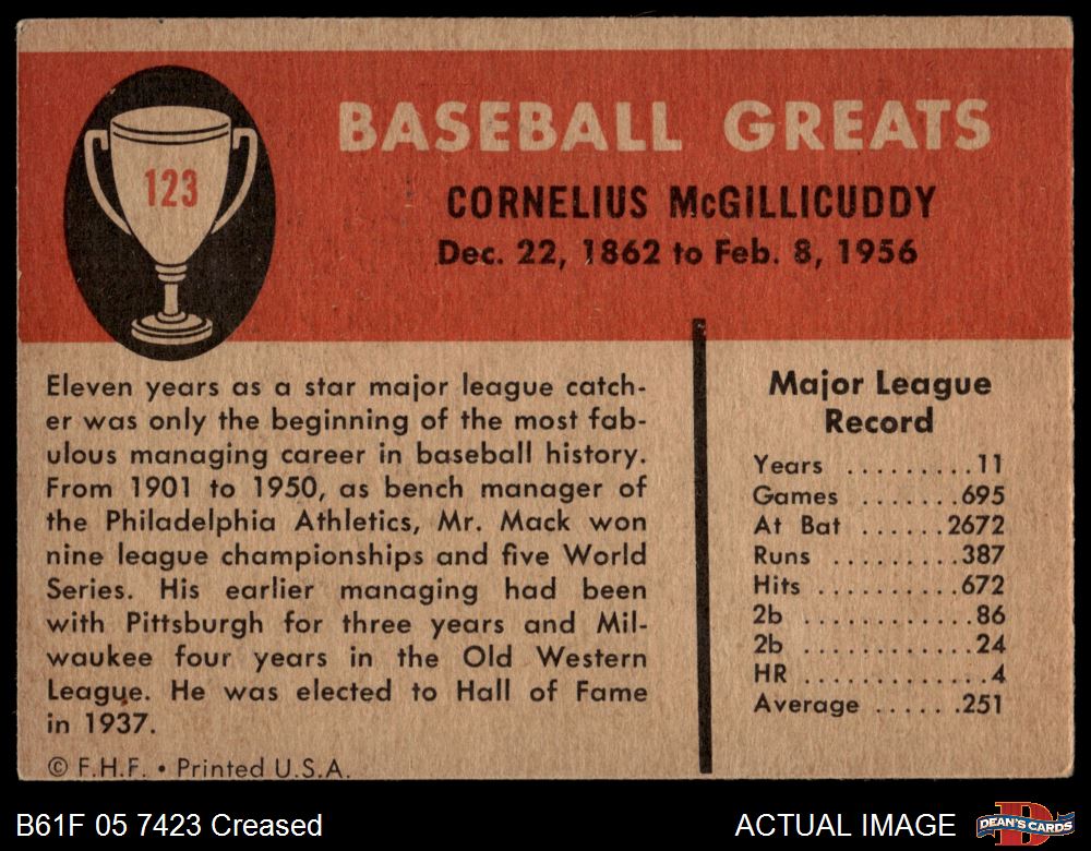 1961 Fleer #123 Connie Mack 2 - GOOD