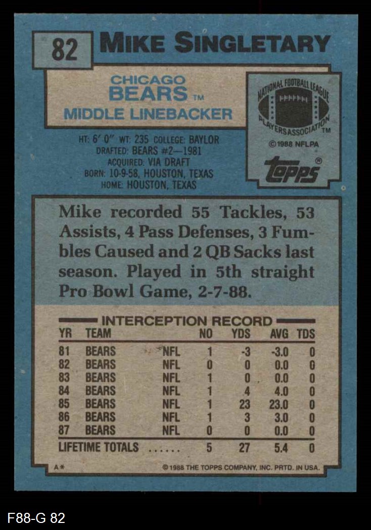 1988 Topps #82 Mike Singletary 8 - NM/MT
