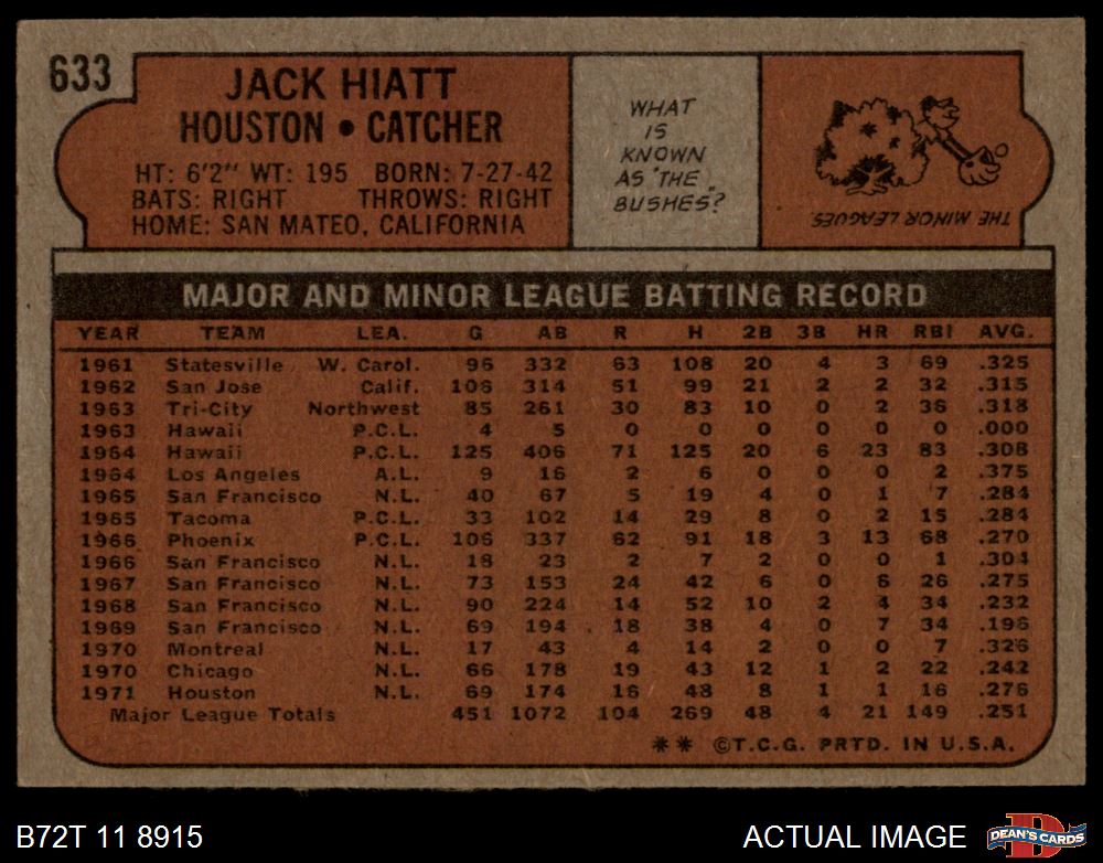 1972 Topps #633 Jack Hiatt 3.5 - VG+