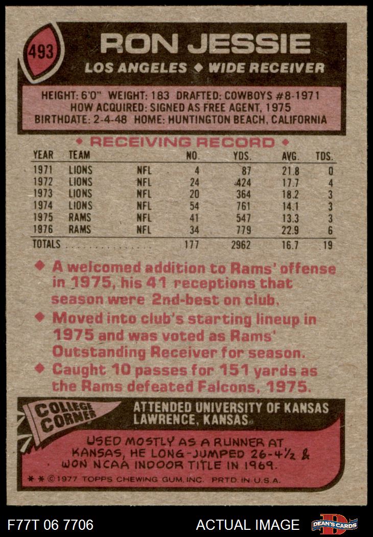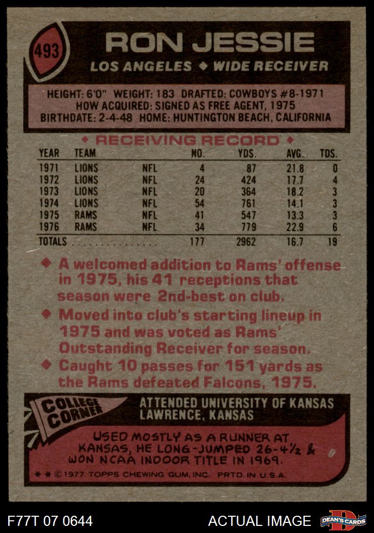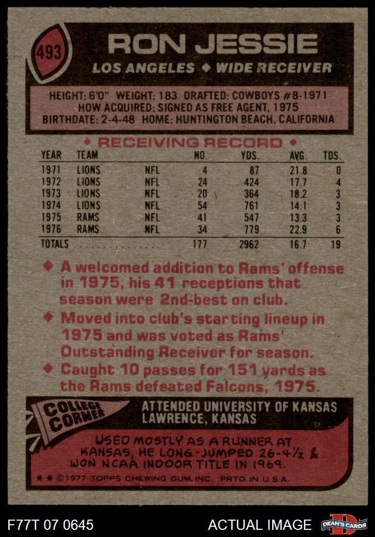 1977 Topps #493 Ron Jessie