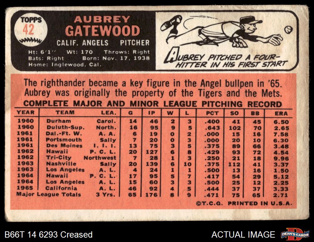 1966 Topps #42 Aubrey Gatewood 1 - POOR