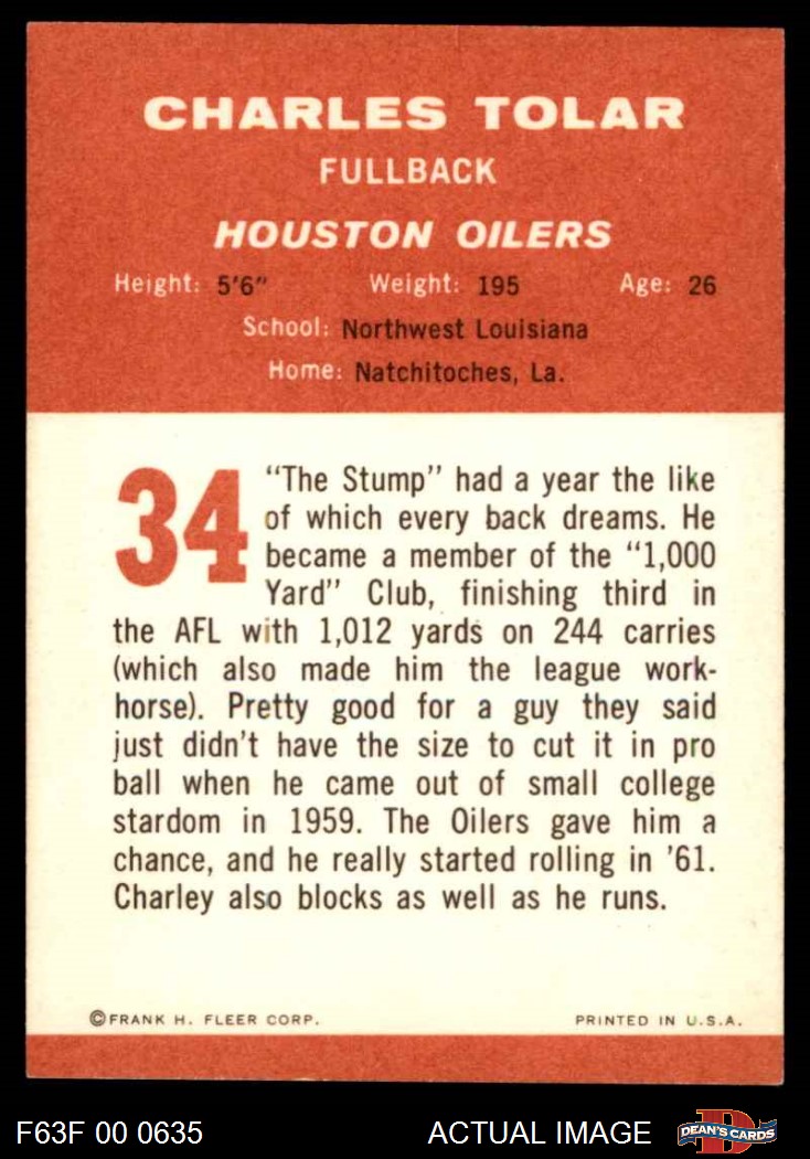1963 Fleer #34 Charles Tolar 5 - EX