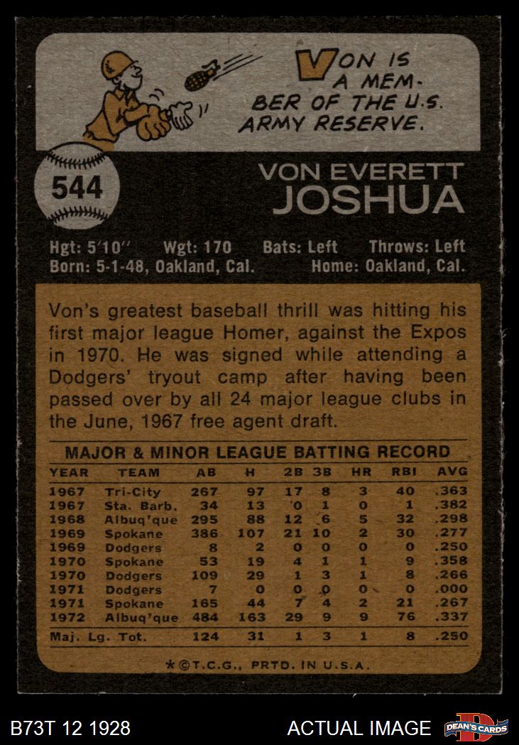 1973 Topps #544 Von Joshua 8 - NM/MT