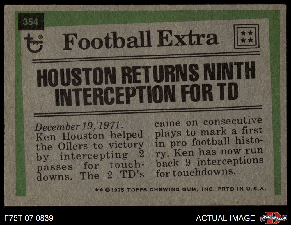 1975 Topps #354 - Ken Houston Record Breaker 4 - VG/EX