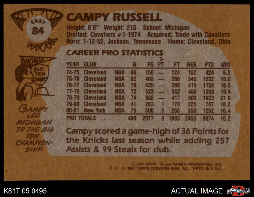 1981 Topps #84 E Campy Russell 8 - NM/MT