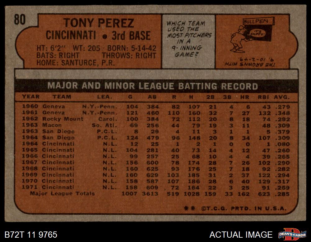 1972 Topps #80 Tony Perez 2.5 - GD+
