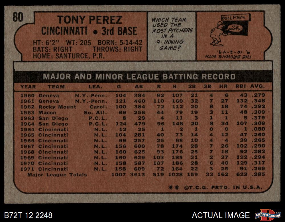 1972 Topps #80 Tony Perez 4 - VG/EX