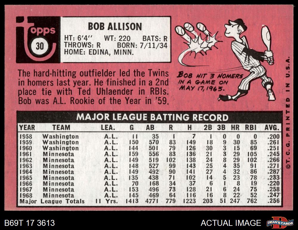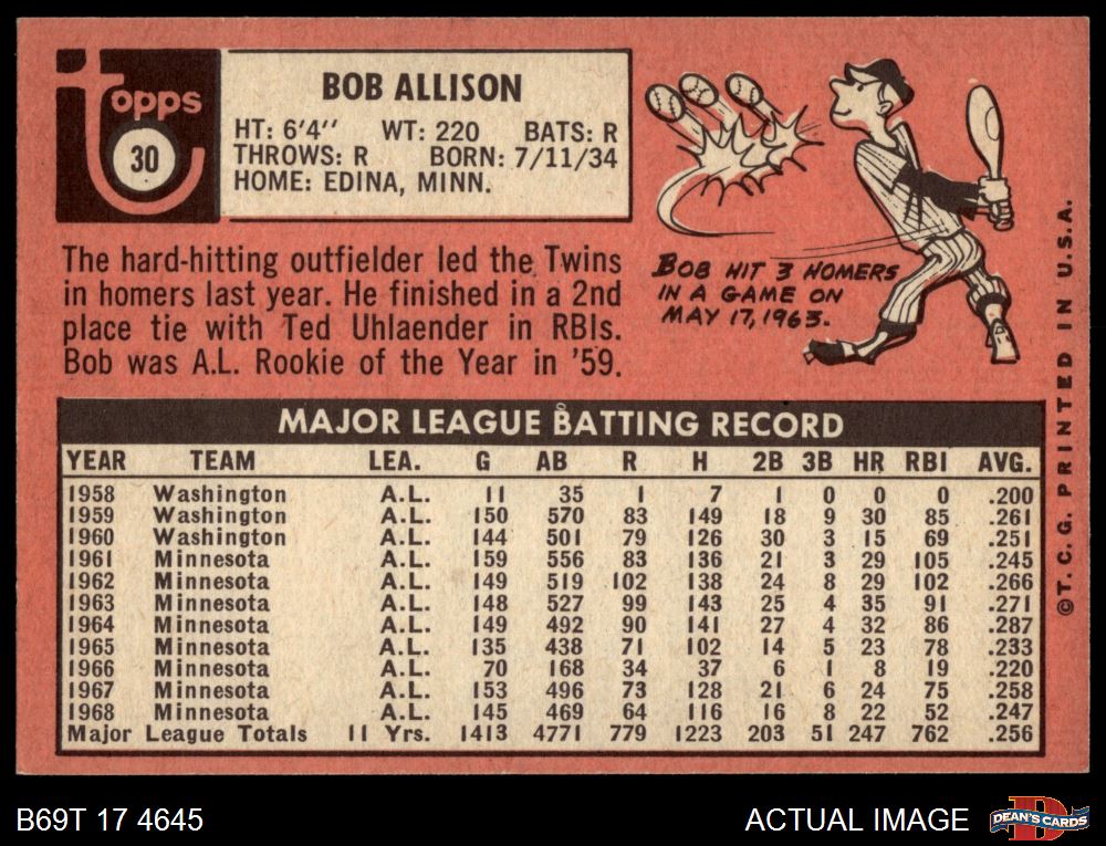 1969 Topps #30 Bob Allison
