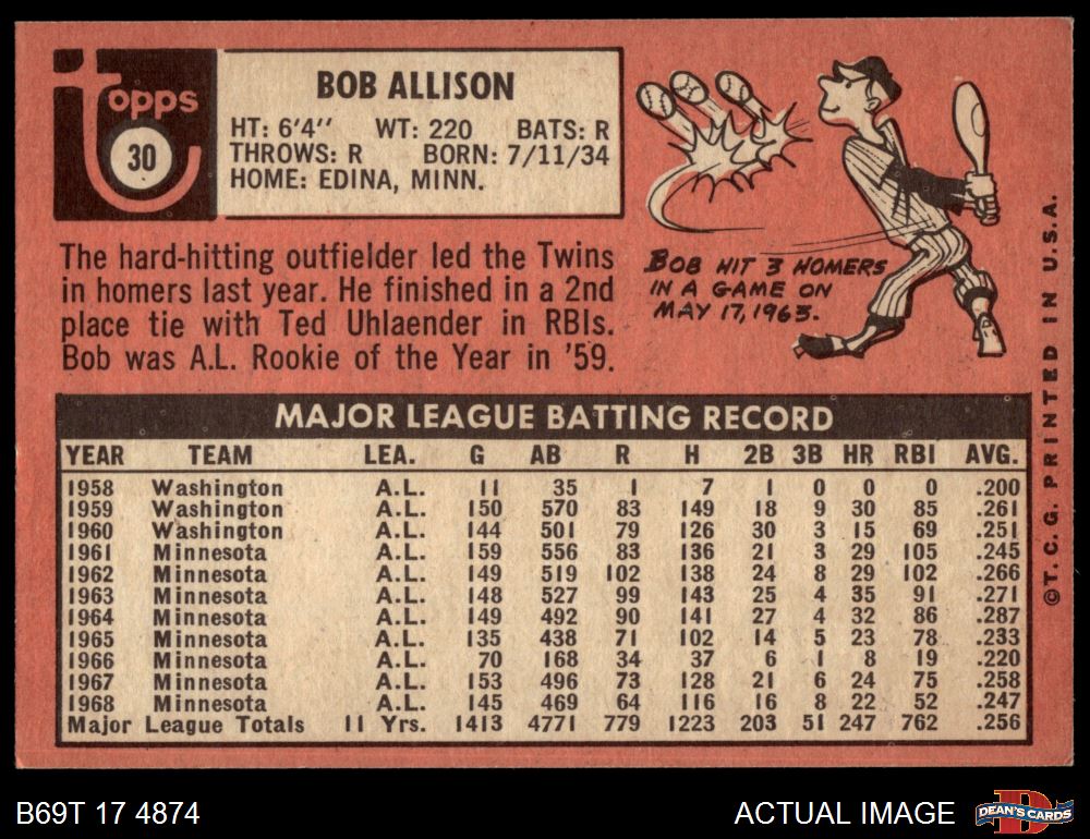1969 Topps #30 Bob Allison 4 - VG/EX