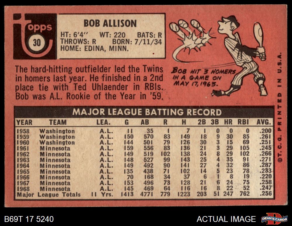 1969 Topps #30 Bob Allison 4.5 - VG/EX+