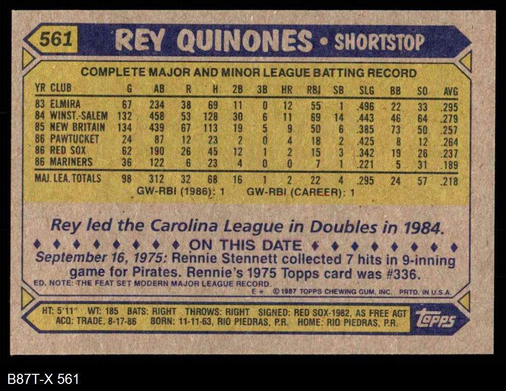 1987 Topps #561 Rey Quinones