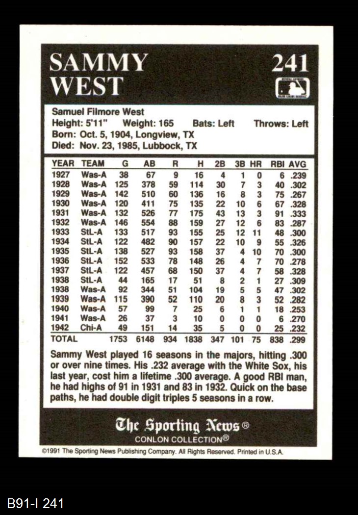 1991 Conlon #241 Sammy West 8 - NM/MT