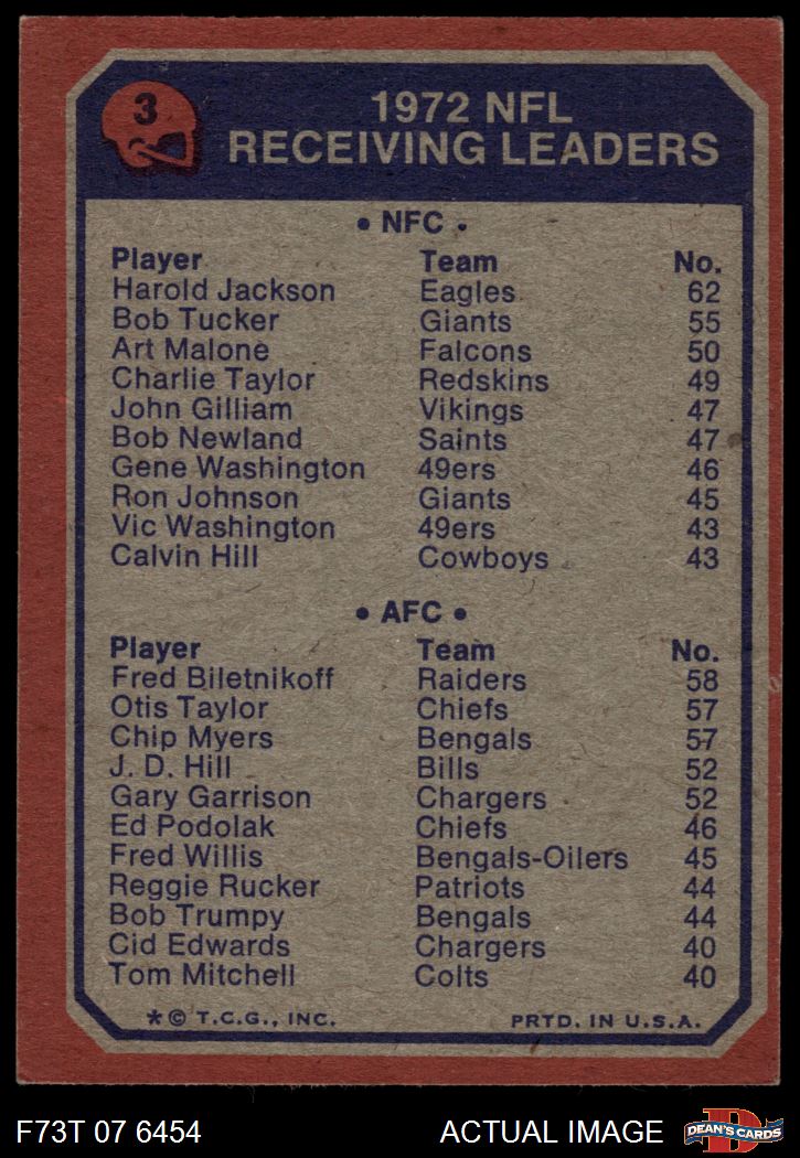 1973 Topps #3 - Fred Biletnikoff / Harold Jackson Receiving Leaders 6 - EX/MT