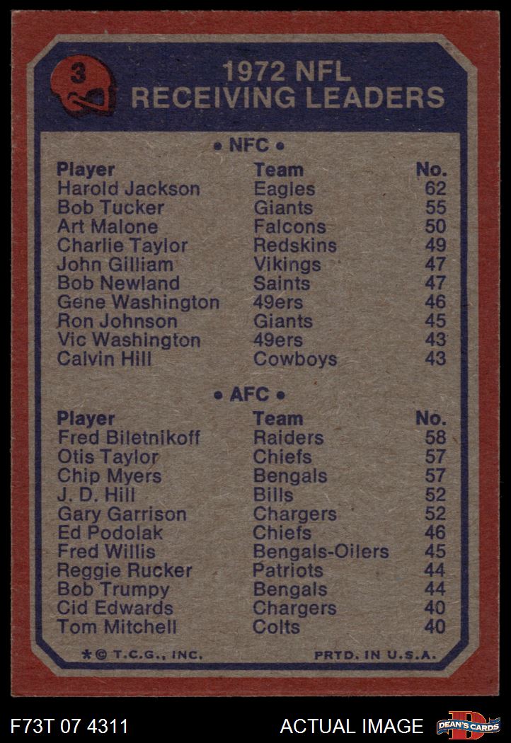 1973 Topps #3 - Fred Biletnikoff / Harold Jackson Receiving Leaders 7 - NM