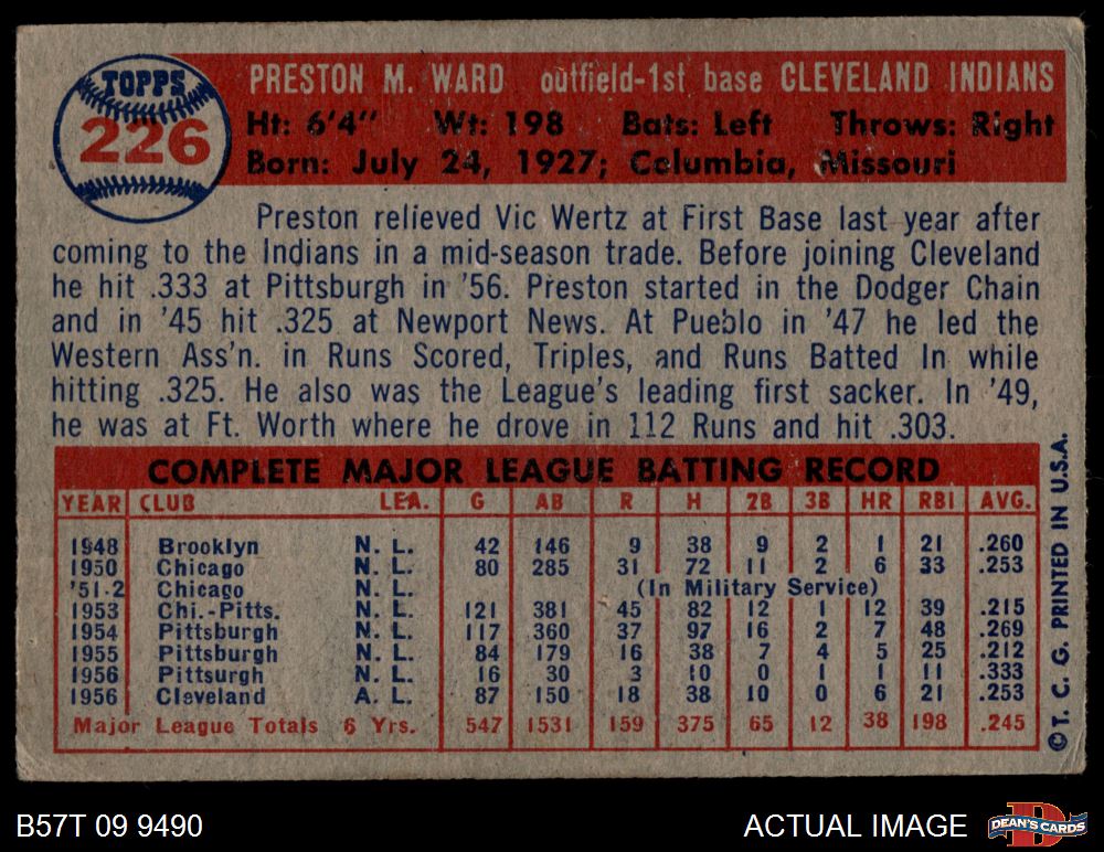 1957 Topps #226 Preston Ward 3 - VG