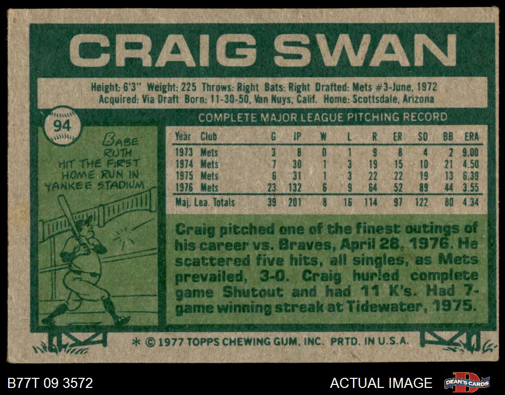 1977 Topps #94 Craig Swan