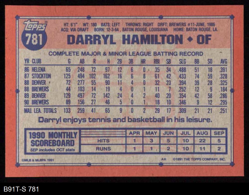 1991 Topps #781 Darryl Hamilton 8 - NM/MT